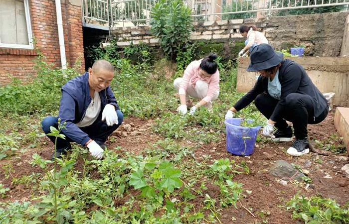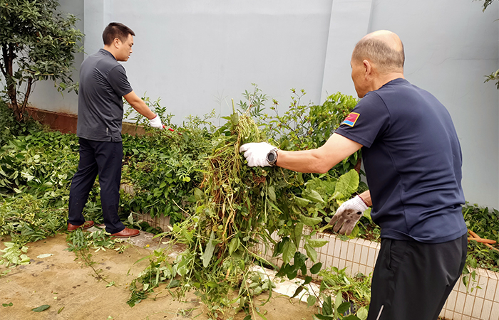 党员干部带头对小区内部环境脏乱,杂树、杂草丛生情况进行清理整治,发挥共产党员的先锋模范作用,使参与人员自觉爱护环境,提升创文、守文意识。