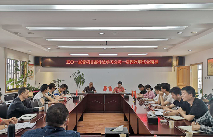 5月25日,五〇一直管项目部组织学习贯彻公司一届四次职代会精神,班子成员、项目经理、科室负责人及部分职工共计32人参与学习。