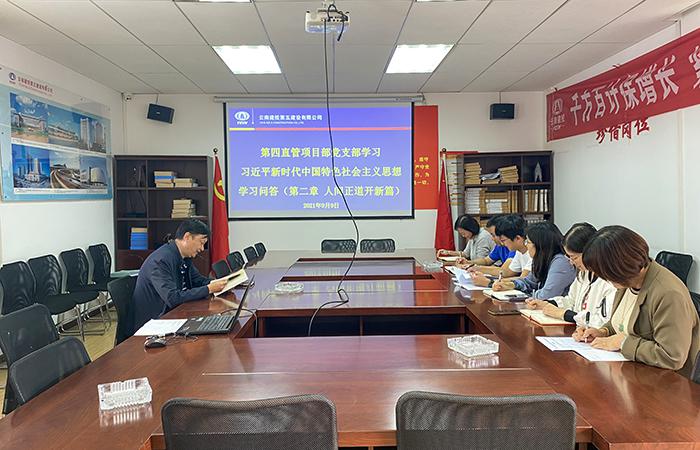 9月9日,第四直管项目部党支部组织在昆党员职工学习《习近平新时代中国特色社会主义思想问答》第二章 人间正道开新篇,共8名党员职工参与学习。
