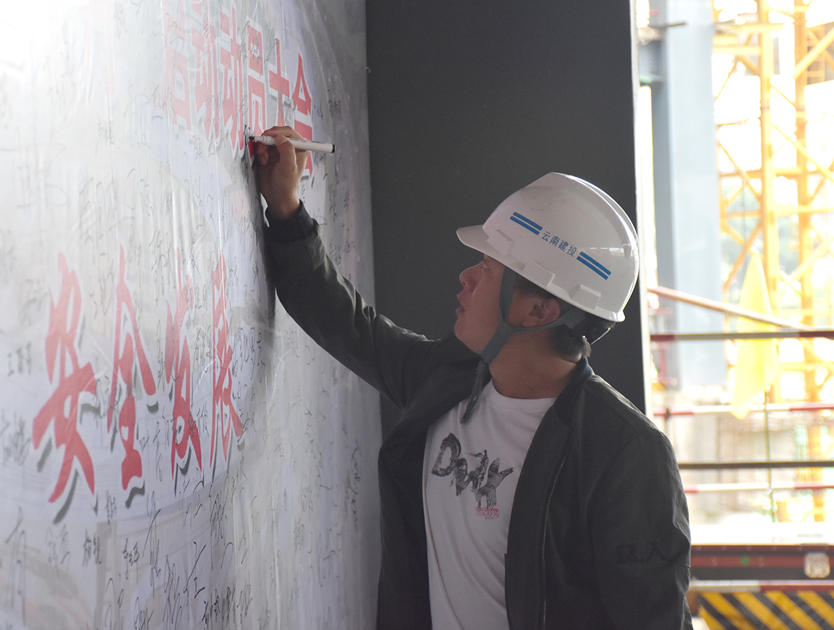 所有参会人员在安全生产月签到墙上郑重签字,出席会议的领导为农民工班组发放了安全知识读本。当天下午,公司各基层单位经理、党支部书记在公司安全生产部的带领下参观了四公司云玺城市花园A1地块三期项目,借鉴安全文化建设。