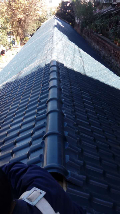 公司68幢宿舍是砖木平房结构,始建于1958年,建筑面积227.59平方米,屋面均是小青瓦,风化破落漏雨情况严重,檀木腐朽。物业公司本着安全第一、节约成本、为职工所想的原则,在短短4天时间内将68幢宿舍屋面更换为重量轻、抗老化、维修便捷的复合树脂瓦。