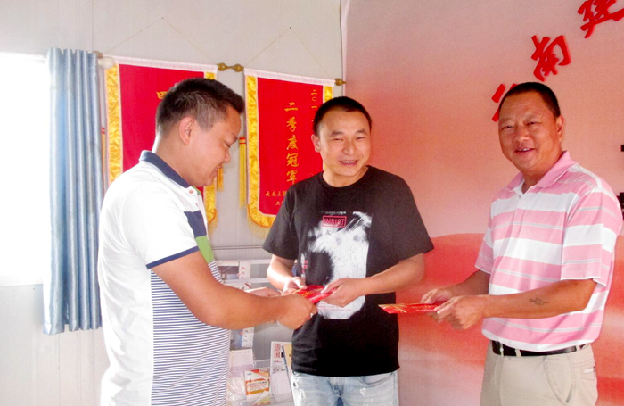 技术支持: 方森科技 9月13日上午,通过微信转账的方式,身在个旧项目部的困难职工王显厚首先领到第一笔中秋节困难职工慰问金。午饭后,五〇七直管项目部党支部书记王俊安带着问候直奔五里商务中心项目,把慰问金亲自交到项目机械管理员李雪波和预算员施文两位困难职工的手里。