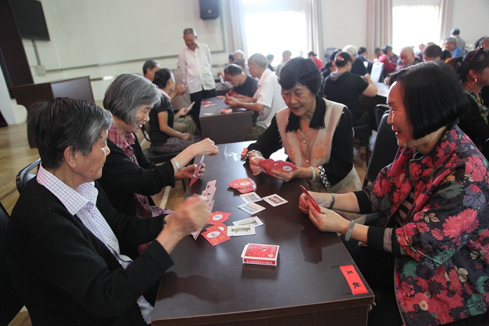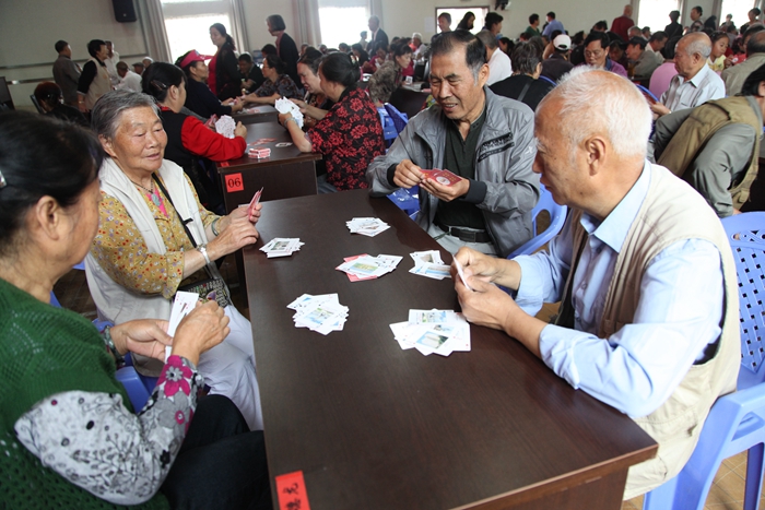 棋牌比赛现场的老职工们