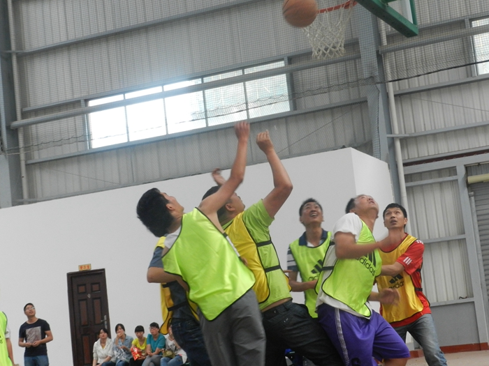歌曲清唱结束后,大家积极参与互动小游戏,团团抱、正话反说、你来比划我来猜,在大家参与配合下,互动游戏高潮迭起,现场欢声笑语不断。接下来的篮球赛仍然精彩不断,男子篮球队以项目团队为单位组成的2队进行了PK,女子球队通过“黑白手”组队进行了PK。比赛中,大家紧张对战,抢篮板、换防、助攻、上步投篮,比分在你追我超的胶着状态下不断攀升,场上的激情伴随着汗水肆意挥发,场下的啦啦队助威呐喊声此起彼伏。