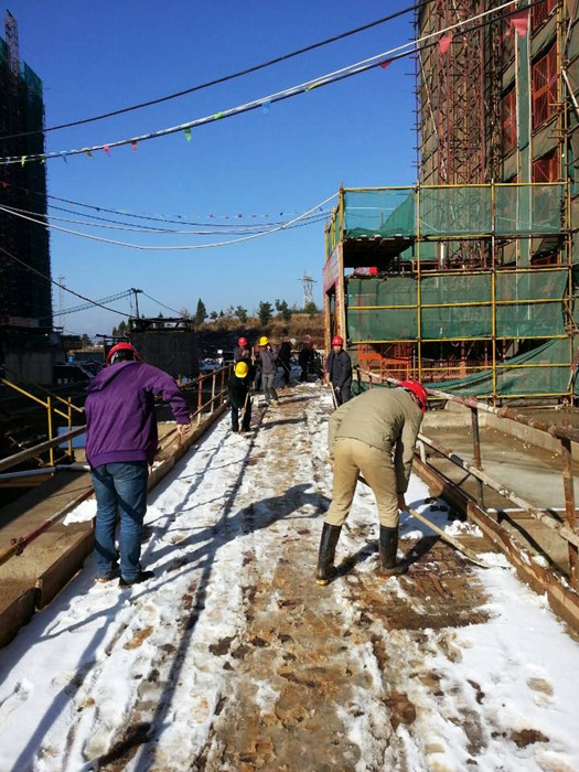 自去年底以来,机场片区已经迎接了三四场大降雪,白茫茫的雪块覆盖着周围的荒山,让这里的气温比市区低了4、5度,幸好之前项目部统一为管理人员购置了毛毯等用品,让大家能在寒冷的气温下御寒。都说瑞雪兆丰年,虽然降雪给项目部的工作添了乱,但大家还是在项目经理的带领下,以满满的热情扫雪除痕,在快乐的气氛里继续生产,营造了和谐的工作氛围,这份乐观感动着项目部的每一个人。