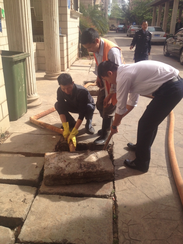 技术支持: 方森科技 2013年3月25日下午,物管公司组织工作人员对南疆花园小区内堵塞的下水管道进行了疏通。工作人员利用铲子等工具对固状体的污物进行了清掏处理,实在无法弄出来的就用双手去抠,在炎热的天气下气味非常刺鼻,工作人员经过近4个小时,清理了堵塞的下水管近50米,确保了小区环境的整洁、干净,保证小区住户的舒适、安宁,努力建设美丽、和谐家园。