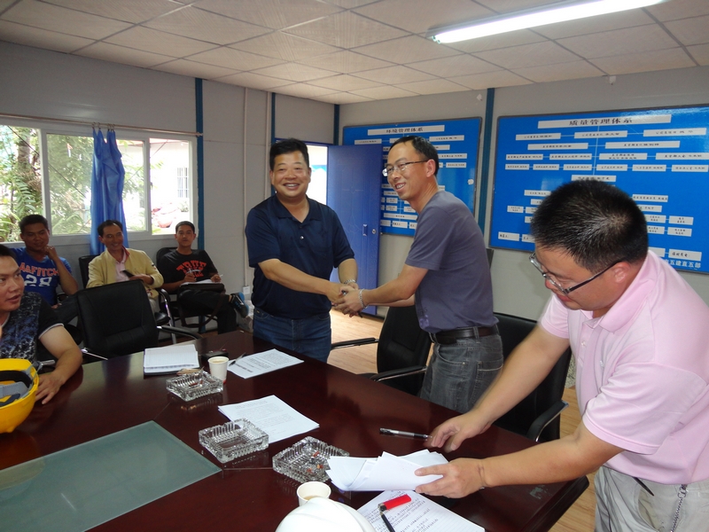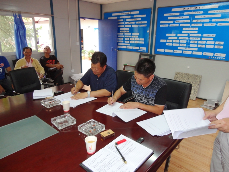 技术支持: 方森科技 2012年6月12日,第五直管部经理李兴奎与各项目部项目经理,经济核算科、生产技术科、质安科、材料机械科、劳资科部门负责人签订了NC录入工作责任状。