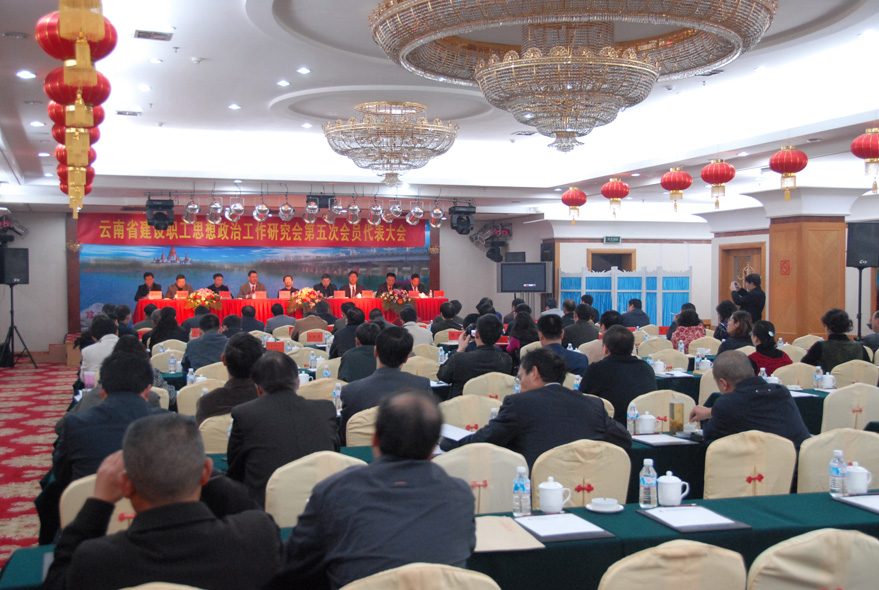 这次大会在德宏州瑞丽市举行。云南省住房和城乡建设厅党组书记、政研会名誉会长叶建成到会并以 《认真学习贯彻党的十七届四中全会精神 大力加强和创新思想政治工作》为主题发表重要讲话。厅党组成员、驻厅纪检组组长李春华作题为《认真学习实践科学发展观 努力开创全省住房城乡建设系统思想政治工作新局面》的大会报告。大会还研究确定了云南省建设职工思想政治工作政研会第五届理事会组织机构和负责人,云南省住房城乡建设厅党组书记叶建成任名誉会长,省住房和城乡建设厅党组成员、驻厅纪检组组长李春华任会长,副会长由省住房和城乡建设厅直属机关党委专职副书记李清海、云南建工集团党委副书记、纪委书记、工会主席张战国担任。五建公司党委书记、董事长杨福和等担任理事。