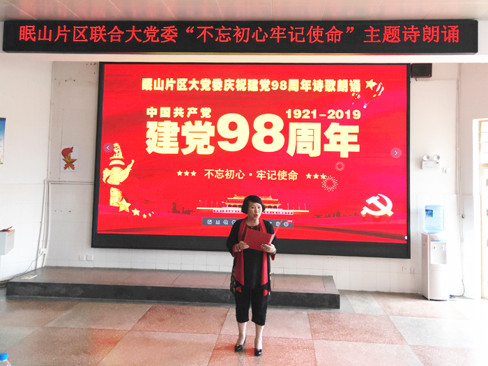 眠山社区联合大党委书记杨涛带领全体党员重温了入党誓词,各基层党组织用一段段经典作品的节选,通过独诵、齐诵等方式,将中国共产党98年的关辉历程生动的呈现在了大家面前。