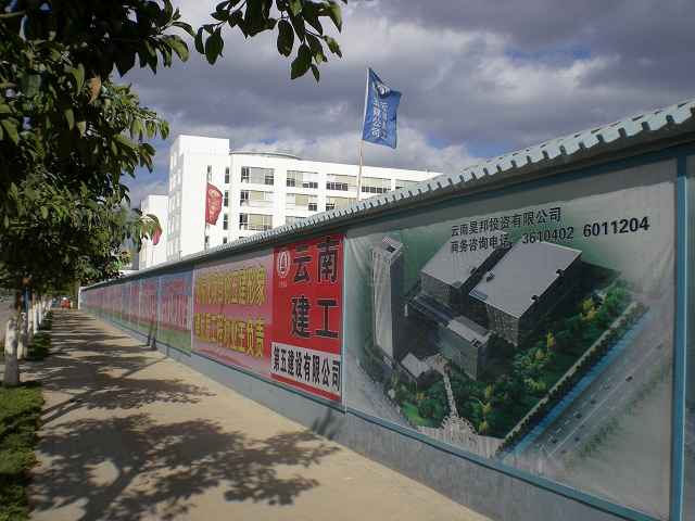 目前,直管部大部分工地的办公、生活配套设施都按照标准要求来设置,项目施工区覆盖电视监控设备和消防设施,并备有急救药箱。工地现场基本做到了封闭式施工,从施工现场流出的污水都统一排出到指定的排水通道,有效防止对外污染。办公区域内组织机构、人员职责、三标体系牌图齐全,多功能会议室设有投影仪,并挂置公司获奖工程照片。施工区域内不仅按规定挂置“十四牌一图”、项目危险源识别控制措施、重要环境因素台帐、安全作业知识图例等标识,还开辟了班组劳动竞赛专栏、507直管部竣工项目展示图例、云南五建新面貌简介、项目施工人员监督牌等多项内容综合的宣传栏,全面客观地展示了企业和直管部的形象。