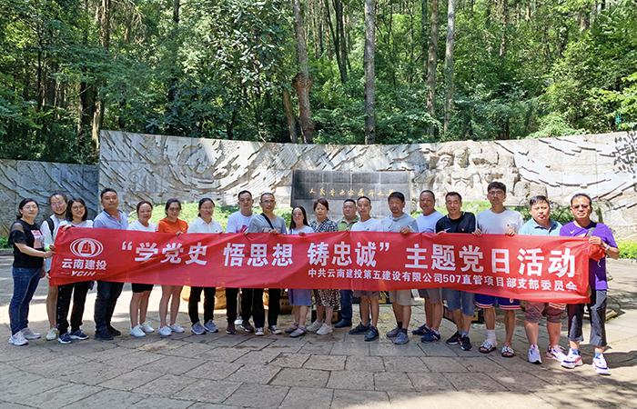 5月22日,五〇七直管部党支部在直管部经理包文、工会主席毕鹏的组织带领下全体在昆党员、发展对象、团员、二线职工及三供一业项目职工,共20人到西山聂耳公墓开展党史教育主题活动。活动中,全体人员来到聂耳墓前,向长眠于罗汉山的“人民音乐家聂耳”敬献花卉、行鞠躬礼、整理缎带和挽联,深切缅怀革命先辈。随后,在解说员的介绍下,大家参观了聂耳墓纪念馆。“倾听”了那烽火岁月中用鲜血和生命谱写下的一曲曲壮歌;全体党…