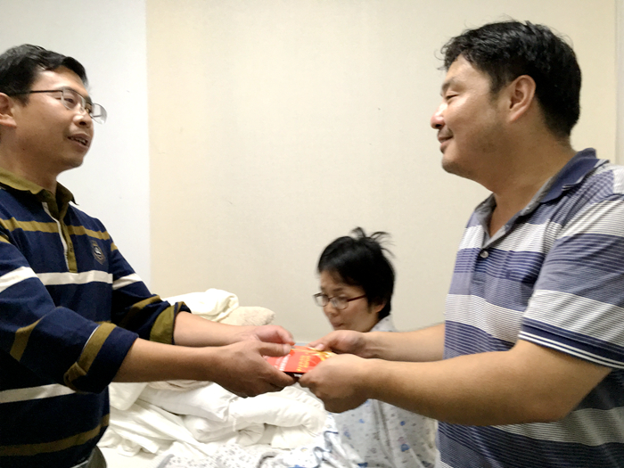 9月13日上午,通过微信转账的方式,身在个旧项目部的困难职工王显厚首先领到第一笔中秋节困难职工慰问金。午饭后,五〇七直管项目部党支部书记王俊安带着问候直奔五里商务中心项目,把慰问金亲自交到项目机械管理员李雪波和预算员施文两位困难职工的手里。 晚上七点,王俊安召集直管部在昆领导班子成员来到昆明医学院第二附属医院骨科康复中心,...
