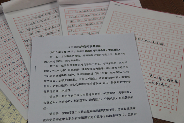 直五部:组织党员、入党积极分子抄写《中国共产党问责条例》