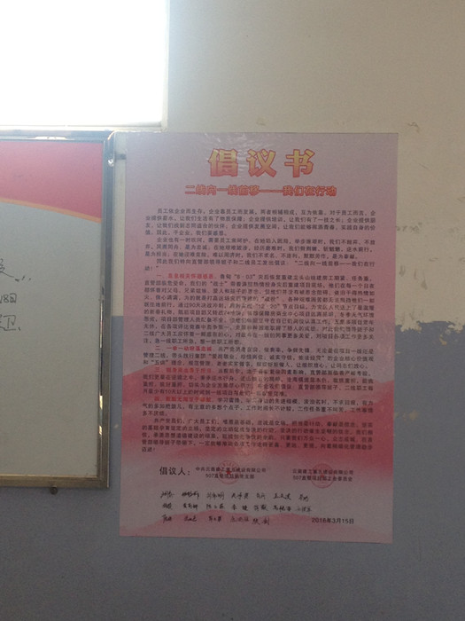 3月15日,五〇七直管项目部在深入开展公司二届四次职代会精神宣贯、学习的过程中,党支部联合工会,向直管部领导班子和二线员工发出了“二线向一线前移——我们在行动”的倡议书。 倡议书向大家提出:一要“息息相关怀德感恩”,领导班子和二线广大员工应怀着一颗感恩的心,对战斗在一线的同事更多关爱,对项目各项工作更多关注,急一线职工所急...