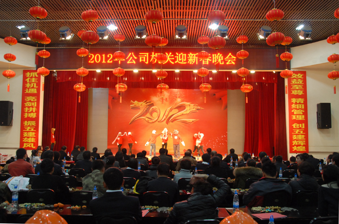 春节临近之际,为感谢机关广大干部职工一年来的辛勤工作。2012年1月17日晚,机关党支部在公司礼堂举办2012年迎新春晚会。公司领导班子成员集体为晚会献艺诗朗诵及小合唱《美丽的草原》。公司党委书记李文智为晚会致辞。 晚会在热闹的舞龙表演中开始,或优美而感动的合唱《明天会更好》,或搞笑而有意义的小品《酒驾》、《招聘》、《交报表》,或充满现代气息的时装...