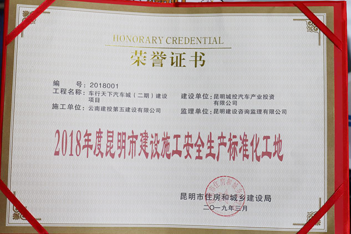 技术支持: 方森科技近日,在昆明市住房和城乡建设局召开的2018年度建设工程质量管理、安全生产、文明施工及扬尘治理管控总结暨2019年度工作安全部署会议上,表彰了一批先进项目和个人。其中,车行天下项目部荣获“昆明市2018年度建筑企业安全生产先进单位”和“昆明市2018年度建设施工安全生产标准化工地”两项大奖,项目经理汪家顺荣获“昆明市2018年度建筑企业安全生产先进个人”荣誉称号。
