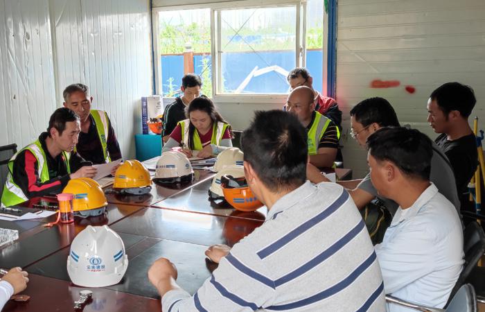 5月26日,五〇四直管项目部组织班子成员、各职能部门负责人及项目管理人员在水云里项目会议室开展以“查身边隐患、保职工安全、促企业发展”为主题的产业工人培训。