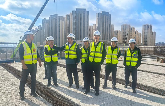 仲金荣一行深入施工现场,实地检查项目安全生产、工程质量、建设进度及文明施工等情况,详细了解项目建设进展、剩余工程量、进度计划,以及项目推进中亟待解决的困难和问题,并提出指导意见及建议。
