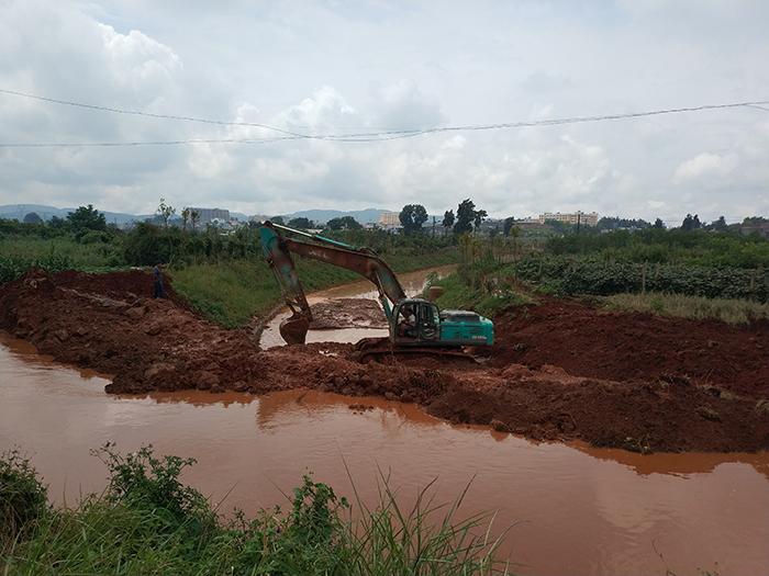 自8月2日起,昆明空港经济区沙沟社区突降暴雨,降雨量为58.1毫米,宝象河洪水猛涨,上游宝象河水库连日泄洪,多股水流汇集到宝象河河道内,河水漫过上游老河道和在建新河道的交汇口围堰,造成河水冲进沙沟社区红沙坡村。