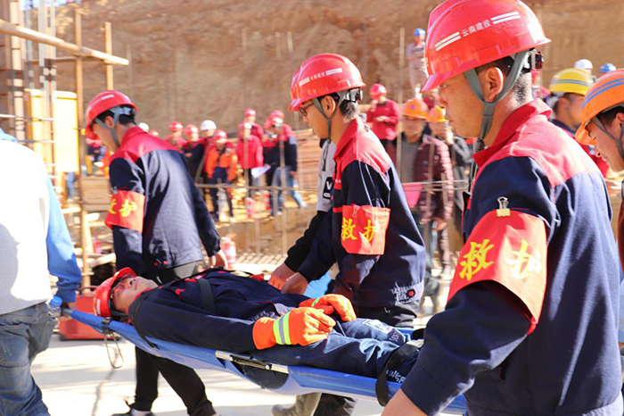演练模拟因在A座1号塔吊附近钢结构焊接过程未采取任何安全防护措施而发生火灾,由项目部管理人员组成的抢险组、通讯组、灭火组、救护组、技术组等陆续到达事故发生现场,对现场进行有序的疏散、灭火、救援等应急措施,整个应急演练活动规范、有序、紧凑、安全、高效。