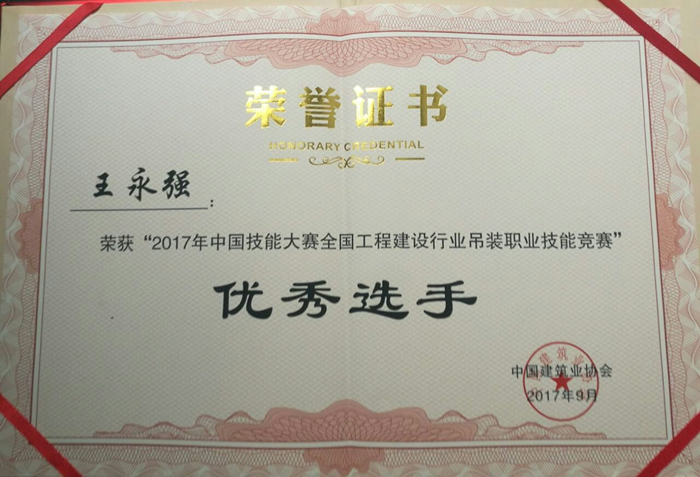 比赛中,参赛选手们认真细心,比拼实地操作。在规定时间内操作塔机完成“定点停放”、“杆道内运行”和“空中击落障碍物”等动作。经过激烈角逐,公司参赛选手王永强荣获“优秀选手”荣誉称号。