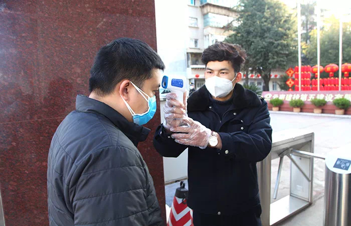 体温关:测体温是此次疫情防控的第一道防线,公司信访维稳办和物业公司管理人员每天上班前严阵以待,坚守在公司机关两个入口对进出职工测量体温,进行健康登记。职工们按照综合办下发的《机关办公区疫情防控指南》提前戴好口罩,井然有序、保持距离等待测量。下午时段,职工需分批前往入口处进行二次测量体温,并做好登记,一旦超过37.2℃,将启动应急处理。