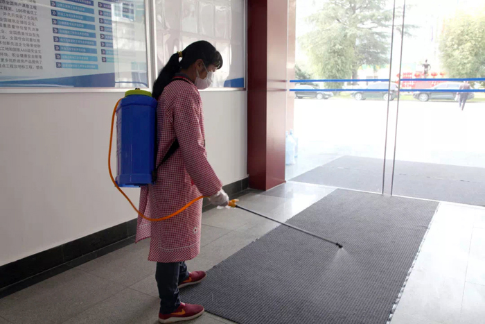 自1月26日起,物业公司在公司家属区张贴了《关于加强小区疫情防控的通知》,悬挂防疫宣传横幅,加大疫情防控知识宣传力度,提升团山小区居民的防控意识,为做好隔离防护工作打好“预防针”。同时,物业公司安排保洁绿化人员每天对职工家属区的公共区域、卫生间进行了全面消毒,全力保障家属区的卫生安全。