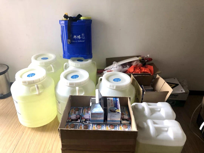 物业公司在复工前就采购了130支体温枪,125桶消毒液、65个喷雾器、45个护目镜、23000个口罩、22套防护服、2箱一次性手套,确保物资供应充足。复工第二日,公司给每一个在岗职工发放了10个一次性口罩。