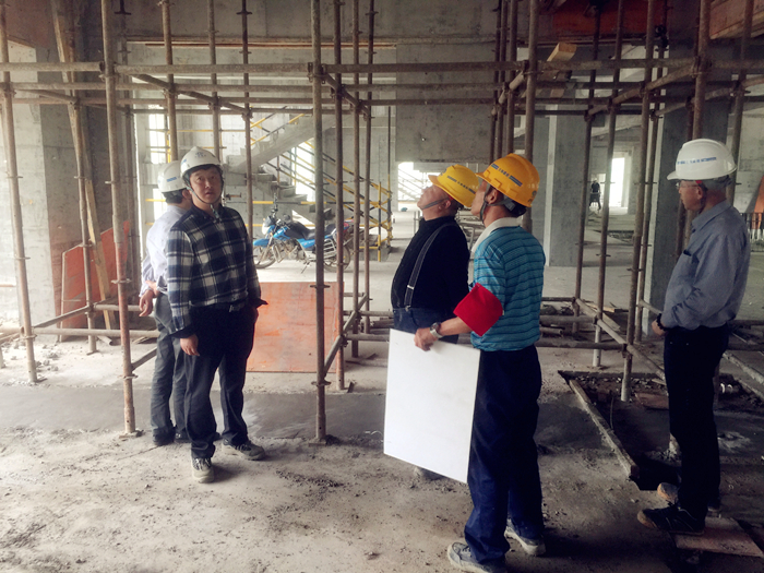 施文钟一行先到工地全面检查了项目的施工情况,着重检查了工程量较大的河堤挡土墙施工,综合楼、3号宿舍楼二次砌体施工,1号食堂人工挖孔桩施工和架空车库基础开挖施工,详细询问了劳动力组织和材料供应等情况,并与集团怒江州职教中心项目建设指挥部沟通了项目的难点及重点工作。