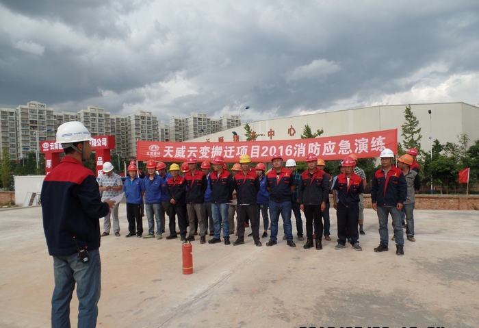 技术支持: 方森科技 2016年6月30日下午,天威云变搬迁项目开展2016年安全生产月活动——消防应急演练,共30余人参加训练。