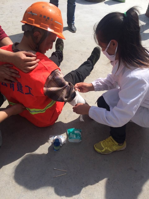 施工现场模拟发生火灾,在固定区域点燃提前准备好的木料,滚滚浓烟弥漫开来,现场负责人立即组织灭火,快速用灭火器控制了火势,并第一时间通知现场安全总监。演练过程中,项目管理人员及劳务班组都参与到灭火中来,学习如何正确、快速使用灭火器,以及必备的逃生知识,来自镇雄县医院的医生护士现场教大家如何处理在火灾中的伤口。