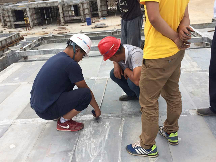 观摩小组对铝模拼装基地现场的实际样板进行了参观,还就如何提高和改进铝合金模板安装的工序、在保证拆除后混凝土质量的技术等问题进行了讨论和交流。