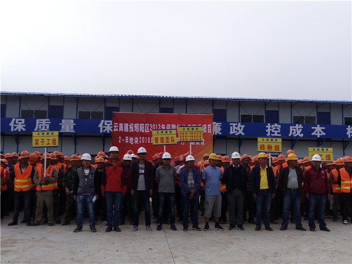 技术支持: 方森科技 2016年6月8日上午,在昭通市昭阳区2013年保障性住房建设项目2-B地块,昭通市昭阳区2013年保障性住房建设项目项目部、云南鲁甸“8·03”灾后恢复重建龙头山集镇民房及风貌建设工程项目部、镇雄县2012年城镇保障性安居工程建设项目社区中心商业项目部召开了2016年“安全生产月”动员会。参加启动会的人员达到300多人。