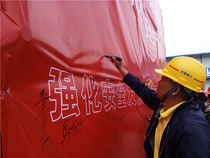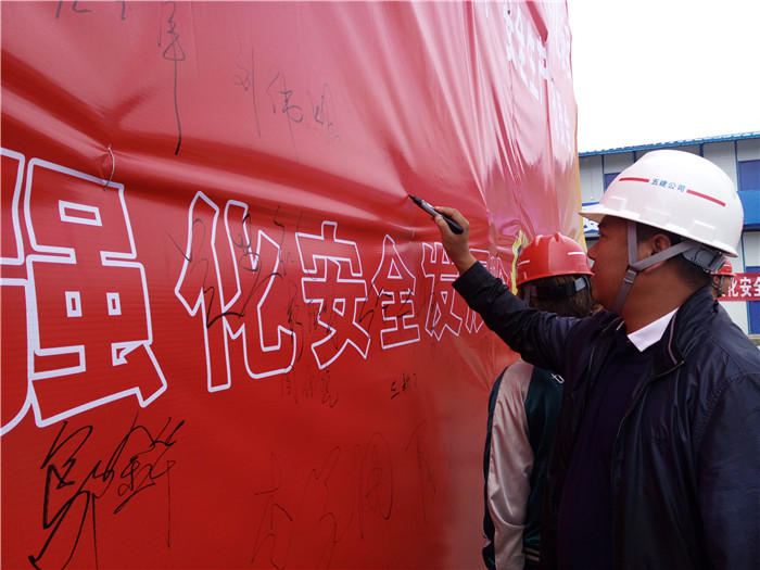 动员会由第九直管项目部项目经理方云波主持,五〇七直管项目部经理王国泰对开展“安全生产月”作了动员讲话,项目安全总监强调了安全生产方面的主要要求。对提出的要求,劳务班组代表在会上作了安全施工承诺。启动会现场发放了宣传手册30多本。项目部提出在6月13日进行外架坍塌的应急演练。
