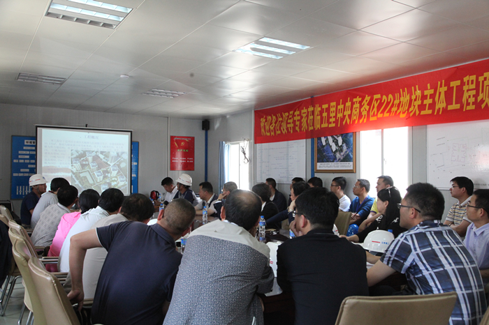4月14日下午,集团总工程师沈家文带领集团总工系统到五〇七直管部施工的五里中央商务区项目A22地块一标段观摩交流,集团各子公司总工程师、技术中心管理人员等共65人参加活动。