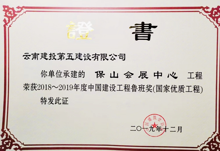 恰是岁末逢佳音,鲁班国优揽入怀。在12月8日和10日中施协、中建协分别组织召开的国家优质工程奖、鲁班奖表彰大会上,公司承建的腾冲永兴财富中心荣获2018—2019年度国家优质工程奖,保山会展中心荣获2018—2019年度中国建设工程鲁班奖。公司总工程师陈芝轩代表公司上台领奖,为公司捧回鲁班奖小金人和国优奖。