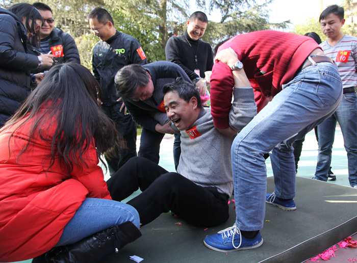 大家分成9组,由公司领导担任组长,带领大家一起完成了“买菜”“跳大绳”“三人两足接力”“合力吹气球”“欢乐大合照”等游戏。“买菜”游戏中大家手拉手围成圈聚精汇神地等待主持人发出指令;在“跳大绳”中,在绳头两端的小伙伴,拼尽全力只为跳得更高;“三人两足接力”考验的是大家的默契度和协调性,“一二”“一二”……有的队健步如飞;让人小小尴尬的“合力吹气球”却成了本场的亮点,大家放下工作中严肃的样子,激烈又搞笑的游戏,引得各队驻足观看,笑声不断;随着“一二三”的指令,每个小组一起面带笑容地跳跃起来,压轴的“欢乐大合照”记录下了各队的精彩瞬间。