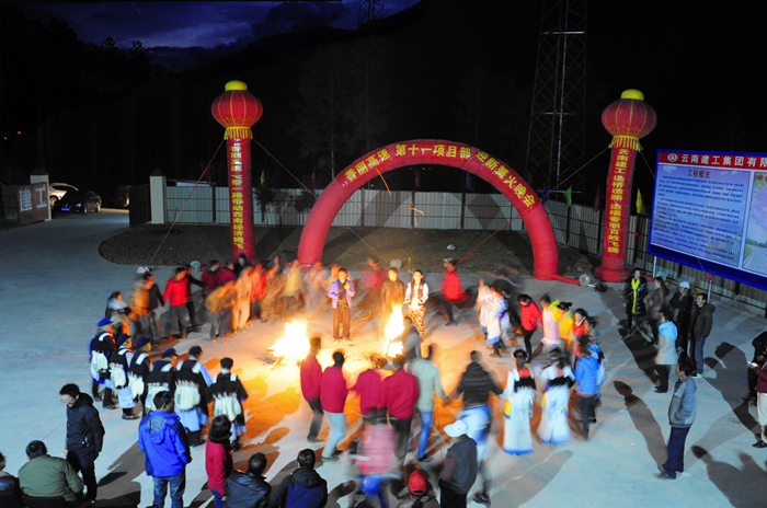 随着夜色降临,现场点起了篝火,史呈森在晚会上发表了新年贺词,向项目一线的职工和纳西族同胞表达了节日慰问与祝福。晚会在熊熊的火光中落下了帷幕。