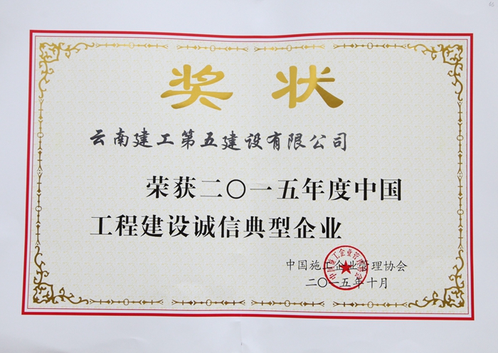 “诚信典型企业”由中国施工企业管理协会组织评选,为表彰在工程建设行业诚实守信,积极履行社会责任,信用记录良好,并为工程建设行业发展做出突出贡献的诚信企业。云南省共有九家企业获此殊荣,集团内有两家公司获奖,公司荣占一席。