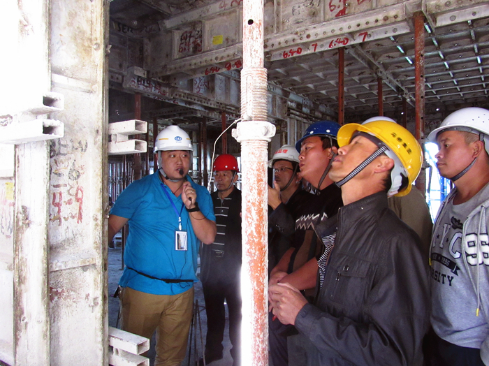 活动中,龙润园项目的执行项目经理及项目总工通过ppt演示的方式对整个项目的亮点、特色及基本运行情况做了介绍。随后,观摩组参观了工序样板区、现场在用铝模、爬架及部分现场栋号,执行项目经理对工程的质量通病整治控制做了全面阐述。