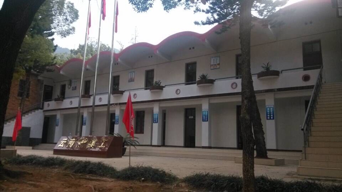 驻地办公区印有“云南建工”标识的小红旗、安全标语及宣传栏