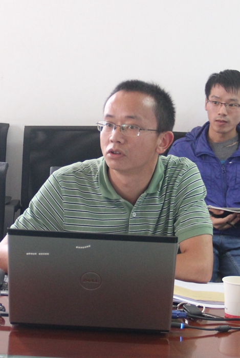 公司五〇一直管项目部副科级主管会计师钱利明正在给新员工作培训