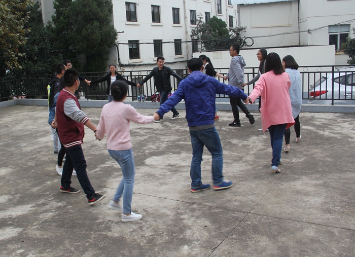 一阵欢快的歌声在公司财务部核算中心的空地上唱起,只见一群潮气蓬勃的新员工正围成一圈玩着“桃花朵朵开”的游戏,大家等待着“命令”或抱成一团,或纷纷散开,在一片欢声笑语里玩得不亦乐乎。