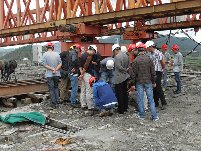 当天下午,路桥二部参观了呈澄高速第六工区项目部办公室及施工现场。办公室分为技术、试验、计量、安全、测量等科室,各科室分工明确,所有资料都摆放整齐,资料的填写都很规范、严谨、细致,所有技术资料都用手写,实验资料也细致到每一种材料、每一道工序,这也是与房屋建筑存在不同的地方。随后,大家又参观了由四公司施工的一座大桥,大桥两端已施工完毕,剩下中间部分两至三跨桥由于受高压线的影响还没有进行施工,现场专业技术人员对桥面的施工及大家提出的问题都进行了详细的讲解。