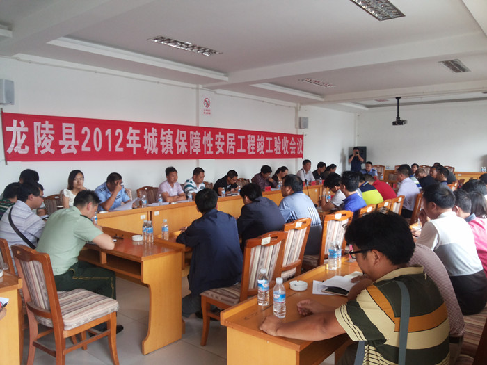 当天下午,竣工验收工作会议在龙陵县住房和城乡建设局举行,检查组分为两个组对龙陵县2012年保障房T1至T11栋及地下室的各个栋号进行现场巡查。