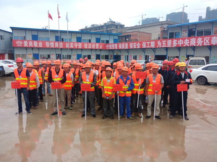 6月5日,五〇七直管项目部在五里中央商务区项目部举行了2015年“安全生产月”启动仪式,直管部领导、公司安全管理部、甲方及监理代表、项目部各个劳务班组的操作人员、项目部管理人员、直管部管理人员共计95人参加了此次活动。