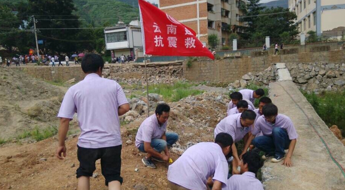 项目部组织了近30名管理人员和班组骨干人员,调集相关的机械设备和救援物资,将“云南建工抗震救灾”的标语贴于车身前,于8月4日10:00时赶赴灾区,10:40到达鲁甸至灾区路口时,由于前方道路实行交通管制以保证救援车队及救护车辆通行,项目管理人员遂弃车步行35公里,于当晚19:00时抵达震中龙头山镇后,不顾疲劳、忍着饥饿,马上投入了抢修输水管道、对相关受灾人群进行问候和发放物资的工作中,为抗震救灾贡献一份力量。截止8月5日下午14时许,项目部人员仍坚守在灾区最前线,继续抗震救灾。