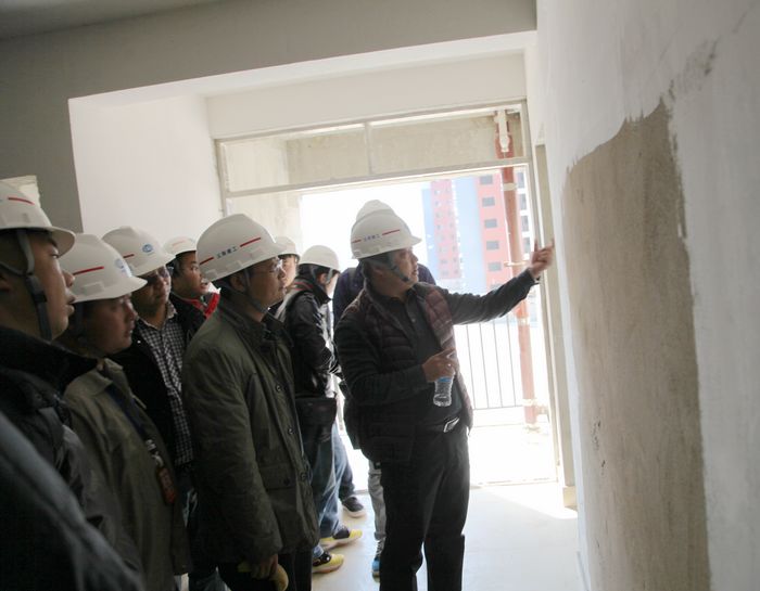 保山市人民政府工贸园区管理委员会代表还到经开区保障房项目进行现场参观。经开区保障房项目部项目经理段鸿向大家介绍了项目的建设情况。昆明经济技术开发区2012年公共租赁住房与商品房混合居住社区是云南省第一个商品房与租赁房混合居住试点社区,是省政府重点关注工程,公司承建的1—7栋,均为住宅楼。地下一层,地上分别为28层、33层、34层,建筑面积约为132000㎡,合同造价约 3.5亿 。于2012年9月15日开工,总工期:520天。工程采用新型铝合金模板,在五公司及云南省均属首次使用,采用新型铝模板工艺施工,第一层拼装达标后每层都一样,确保产品质量;以后每层的控制检查均是统一模式,减少管控难度;一层模板运输至现场,工程封顶后退场,减少中间的运输环节,所有栋号提前原计划20天封顶;依靠工艺保质量,实现大面不粉,洞口不用打凿修补,在装修阶段可节约大量工期。项目自进场以来,始终坚持按照争创云南省优质工程的质量标准严格要求,使工程质量稳中上升,得到了上级领导、监理和业主等社会各界的肯定;曾接受山东省建设厅、中建、十四冶、集团内部兄弟单位及各级政府参观、指导。