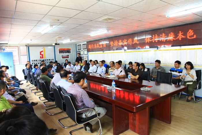 一到项目,张战国便带着大家直奔项目现场,了解了项目概况后,大家又到项目部会议室了解了群众路线教育实践活动在文化空间项目的落实和开展,直观感受教育实践活动的开展对企业生产经营工作的推动和促进。张战国称赞直四部的团队年轻、有朝气、有战斗力、有团结协作精神。他还提议让参观交流的领导干部多与项目负责人进行管理经验交流,促进教育实践活动深入一线、深入项目。同时,他要求项目部要再接再厉,进一步加强项目管理,努力为项目创效益、为职工谋福利、为公司树品牌、为集团争声誉。