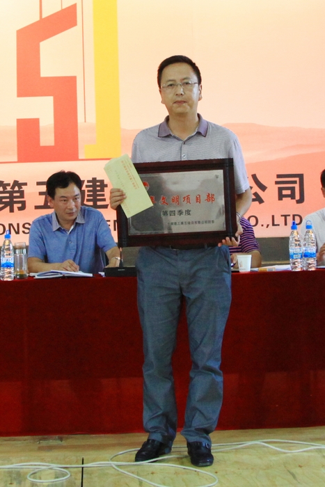 2013年7月15日,公司在礼堂召开2013年二季度生产会暨“五位一体”工作会,对公司42个工地在二季度安全(包含设备管理、临时用电、脚手架搭设、高处作业,现场文明施工、消防设施等方面)、质量、技术、进度和成本等方面存在的不足及优秀做法用图文并茂的方式进行了总结分析,会议还对在二季度综合评比较好的6个项目部、1个青年文明项目部进行了表彰,同时对较差的项目部进行了通报。公司党委书记李兴奎,副总经理、总工程师焦伦杰,工会主席史呈森,副总经理杨凡及各直管部主要领导及相关人员共计138人参加了会议。